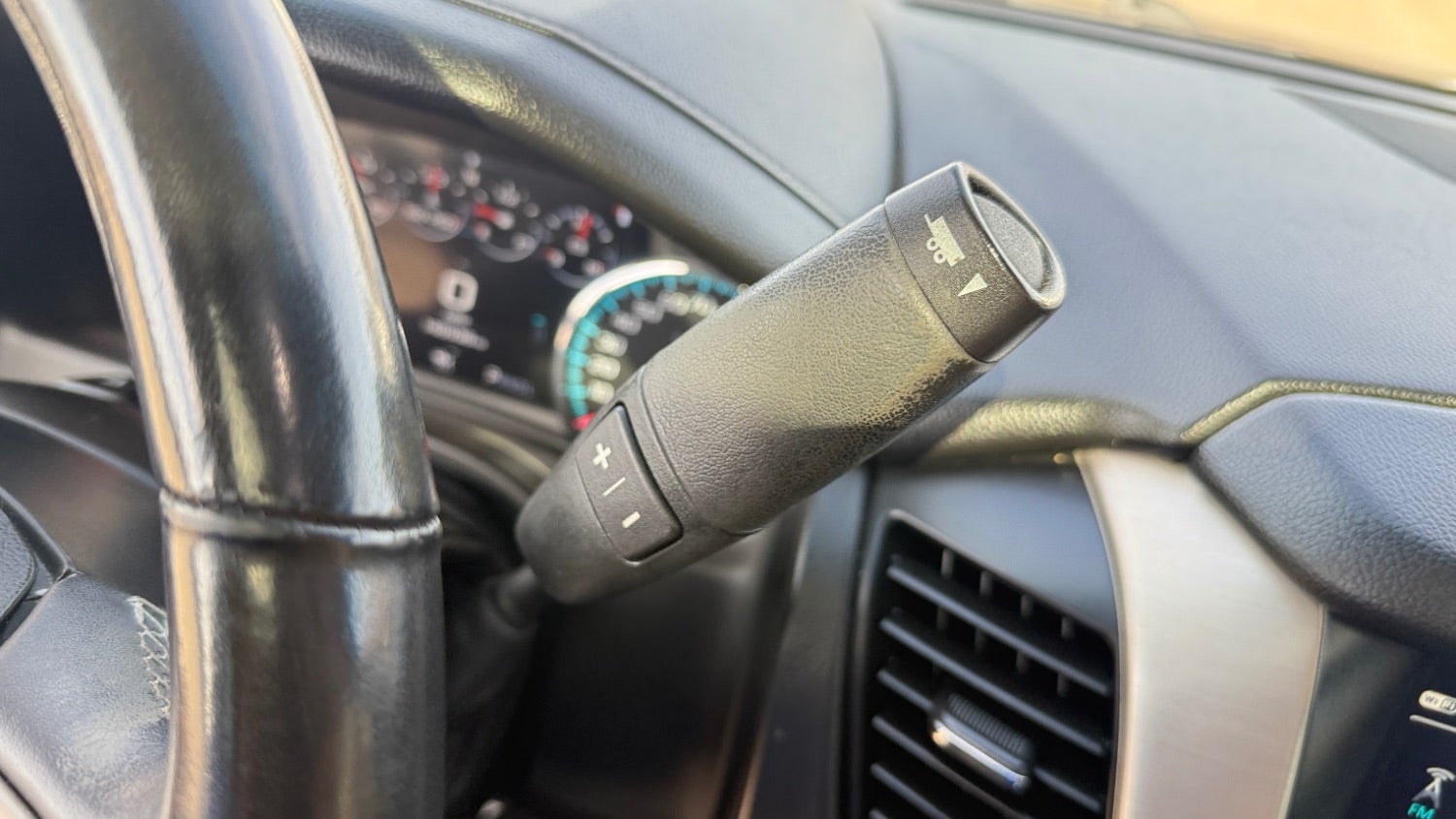 - Tow/haul mode selector, button located at end of shift lever